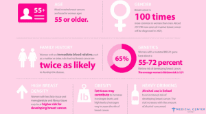 - Age: Being 55 years of age or older increases the risk of developing breast cancer